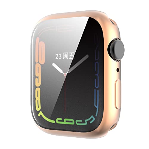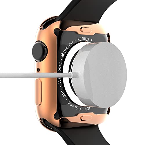 جراب وشاشة حماية مطلي بالكهرباء من البولي يوريثين المقاوم للحرارة والسيليكون لساعة ابل 7 45 ملم للرجال والاولاد والبنات والسيدات بونيسي - حافظة ساعة اي ووتش لون ذهبي وردي تي بي يو