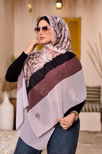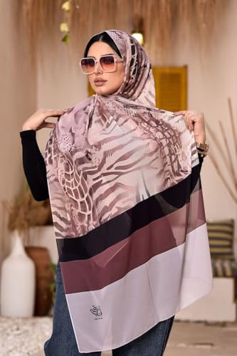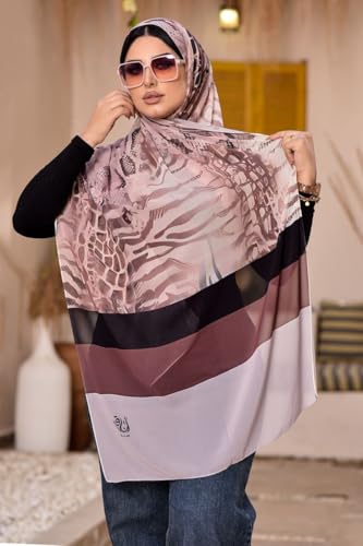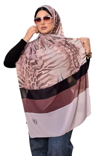 حجاب شيفون بطبعة نمر، نمط مخطط انيق، درجات لون بينك واسود