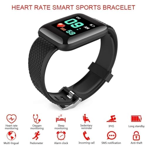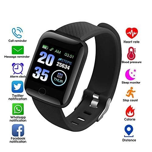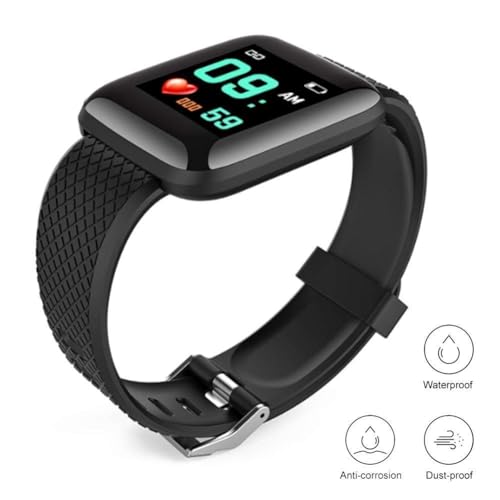ساعة ذكية رياضية تعمل بالبلوتوث وتوفر تحكم كامل عن طريق اللمس مع شاشة اموليد ومستشعر لمعدل نبضات القلب وضوء من تيكستون، أسود