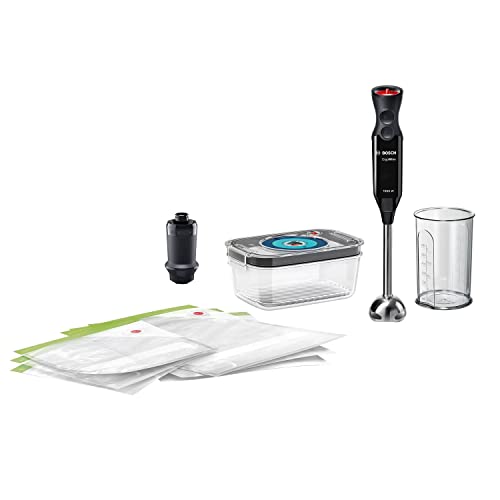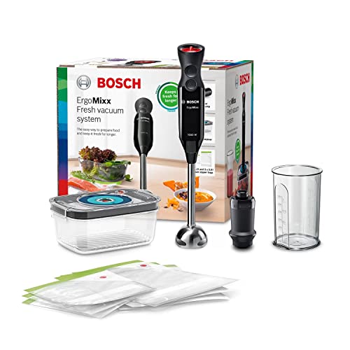 - خلاط يدوي ايرجو ميكس مع نظام شفط كهربائي 1000 وات، اسود، رصاصي، كواترو بليد، 12 اعدادات للسرعة مع وظيفة تربو- موديل MS6CB61V1 من بوش