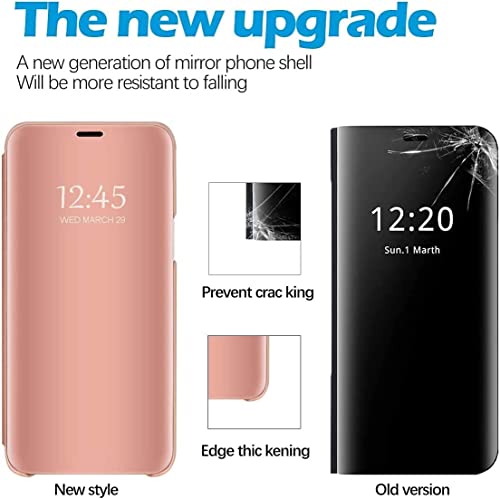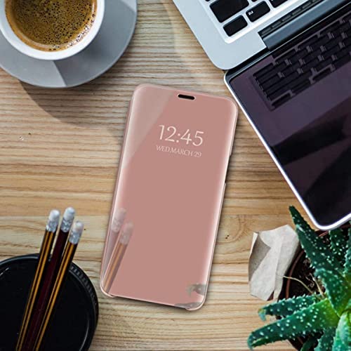 لـ هاتف شاومي ريدمي 9C جراب من بولي كربونات حماية سمارت فيو شفاف قابل للطي محـمولجي يوفر تغطية كاملة بزاوية 360 درجة بطلاء عاكس ملائم لوضع المكياج بحامل غير ذكي - جولدي روز