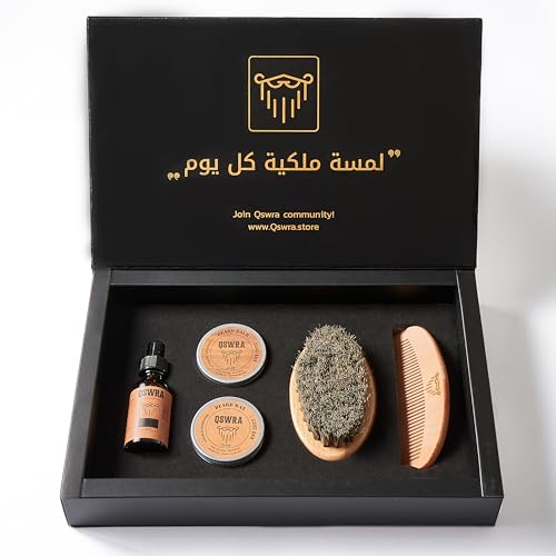 مجموعة حلاقة اللحية الفائقة مع زيت اللحية والبلسم والشمع ومشط وفرشاة للرجال من QSWRA