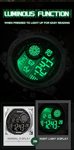 ساعات رجالية عسكرية متعددة الوظائف 50M مقاومة للماء 7 ألوان LED خلفية سوداء ساعة رياضية سوداء, أحمر, 50 mm,