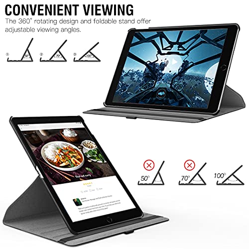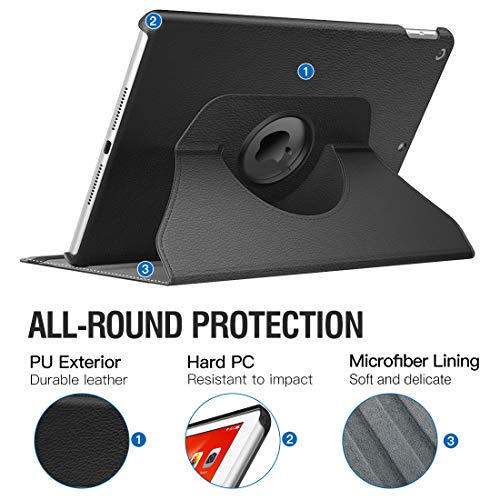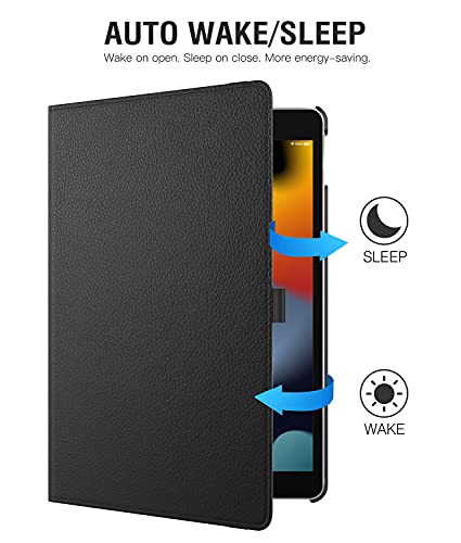 جراب حماية لاي باد الجيل التاسع 2021 من تيموفو جاب اي الثامن 2020 السابع 10.2 بوصة 2019 تدور 360 درجة بخاصية التنبيه - السكون التلقائي وشاشة عرض ريتينا - لون أسود جلد صناعي