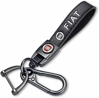 ميدالية وسلسلة مفاتيح سيارة من الجلد وحلقات معدن مناسبة لمفاتيح السيارة والدراجات النارية ومفاتيح العائلة - متوافقة مع فيات أسود