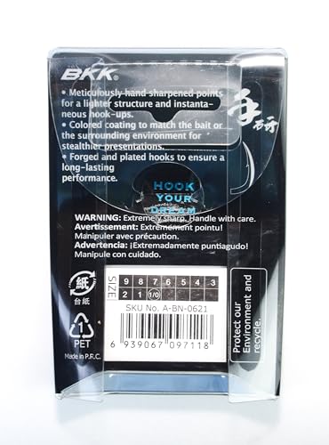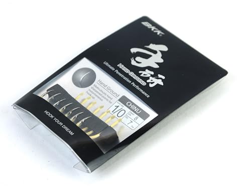 خطاف صيد سمك دائري تشينو للصيد بالمياه المالحة من الصلب عالي الكربون من 8 قطع من بي كيه كيه، بمقاس أوروبي: 1/0، المقاس الياباني: 8