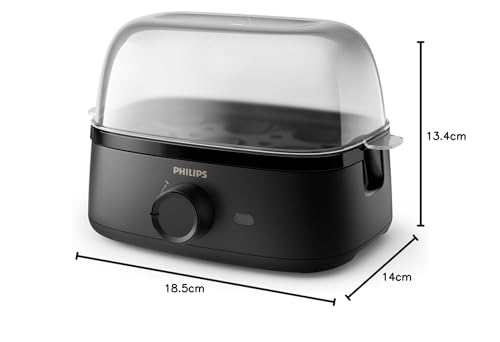 جهاز طهي البيض من فيليبس (سلسلة 3000): قدرة 400 واط، سعة 6 بيضات، مستويات طهي متعددة مع ملحق للبيض المسلوق وتنبيه عند الجاهزية، أسود - HD9137/91