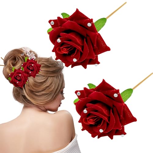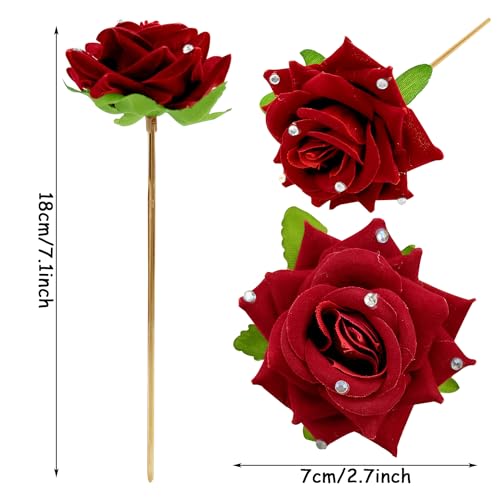 دبوس شعر وردي أحمر مرصع بالماس، دبابيس شعر على شكل وردة بوبي، دبوس شعر للزفاف للعرائس، إكسسوارات شعر نسائية للبنات للحفلات وحفلات الزفاف وعيد الحب، قطعتان