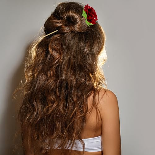 - ★【محتويات العبوة】: قطعتان من دبوس الشعر بالورد الأحمر الماسي، كمية كافية تتيح لك التغيير والمطابقة حسب احتياجاتك اليومية.