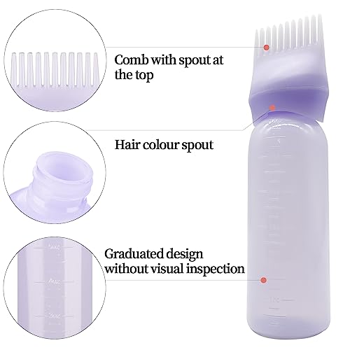 - تصميم خاص: تحتوي زجاجات مشط صبغ الشعر على مشط في الرأس مع مقياس وفوهة في الجزء العلوي من المشط، مما يوفر لك طريقة أسهل وأكثر ملاءمة لصبغ شعرك.