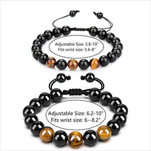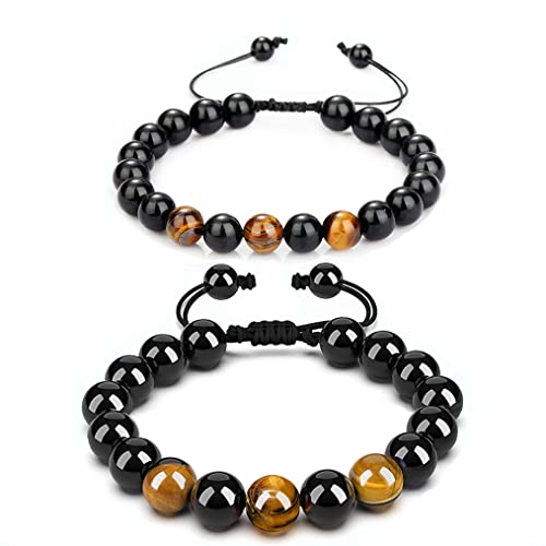 سوار للرجال من ان/ايه جوفجيو، اساور خرز كريستال عين النمر، سوار حماية قابل للتعديل يناسب مقاس 5.8-8 انش (8 ملم + 10 ملم اصفر خرز)