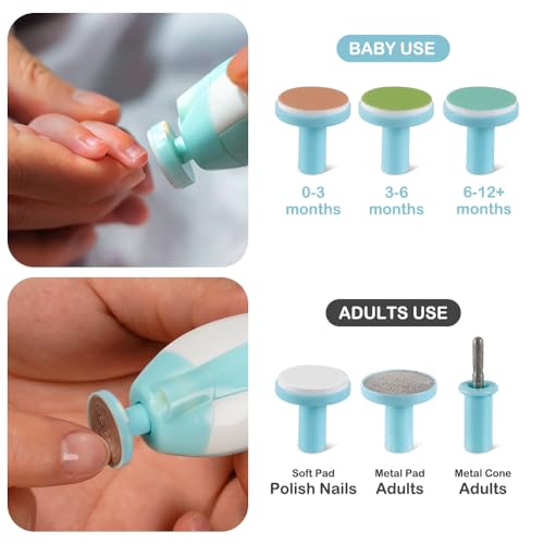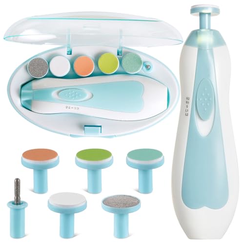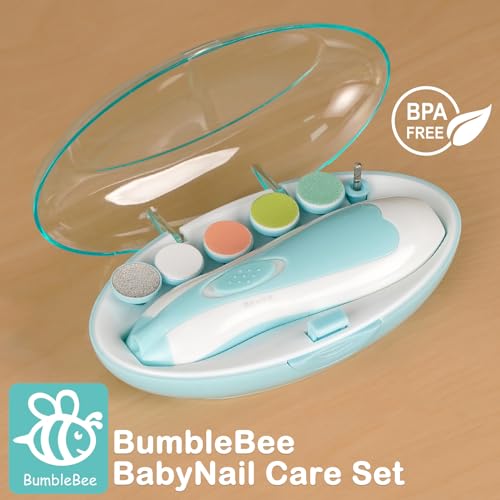 قصافة أظافر كهربائية آمنة للأطفال بإضاءة ليد، مجموعة العناية بأظافر الأطفال حديثي الولادة أو الأطفال الصغار أو اللكبار مع وسادات بديلة إضافية من بامبل بي