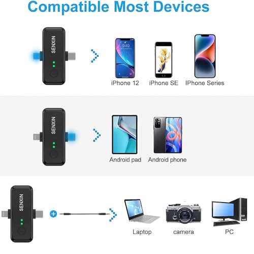 - يحتوي مستقبل هذا الميكروفون 3 في 1 على 3 منافذ: موصل لايتنينج وموصل نوع سي ومقبس 3.5 ملم لموبايل ايفون واندرويد والكاميرا ومكبرات الصوت والعديد من أجهزة التسجيل الأخرى.