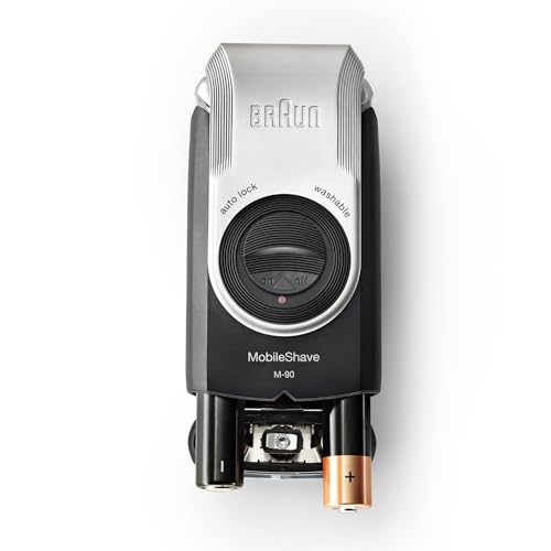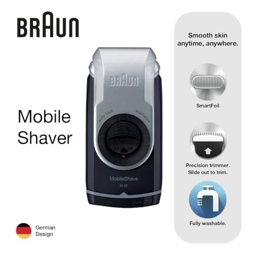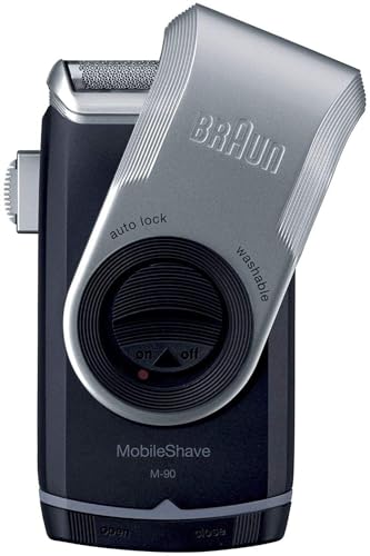 ماكينة حلاقة متنقلة موبايل شيف مزودة بغطاء ملتف وتعمل بالبطارية M-90 من براون - ازرق داكن / فضي
