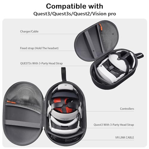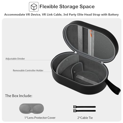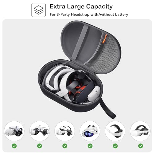 شنطة حمل لميتا كويست 3/ ميتا كويست 2، بيكو 4/ ابل فيجن برو في ار ايليت إصدار البطارية/ تصميم كيوي/ سماعات رأس بوبوفر وملحقات وحدة التحكم - أسود (شنطة فقط)، من برو كيس