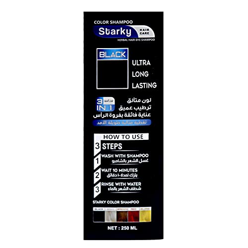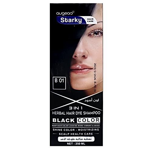 شامبو صبغة الشعر بالأعشاب وبلون أسود لامع 3 في 1 للحصول على لون متالق وترطيب وعناية فائقة بفروة الرأس وتغطية مثالية طويلة الامد من ستاركي، لون أسود (B01) - 250 مل