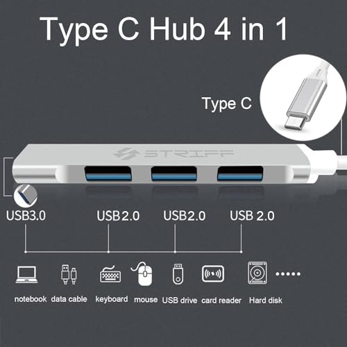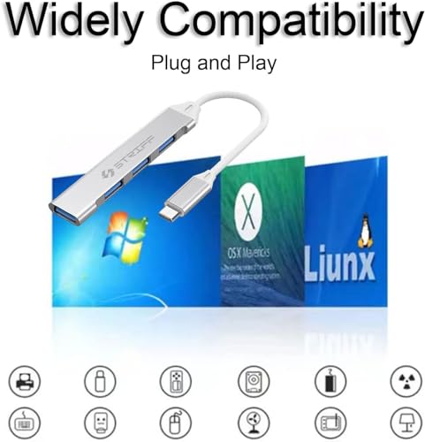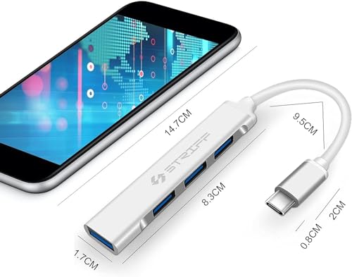 محول موزع USB نوع C متعدد المنافذ 4 في 1 من ستريف موصل النوع الى مع سرعة نقل بيانات سريعة للكمبيوتر واللاب توب وماك بوك فضي .