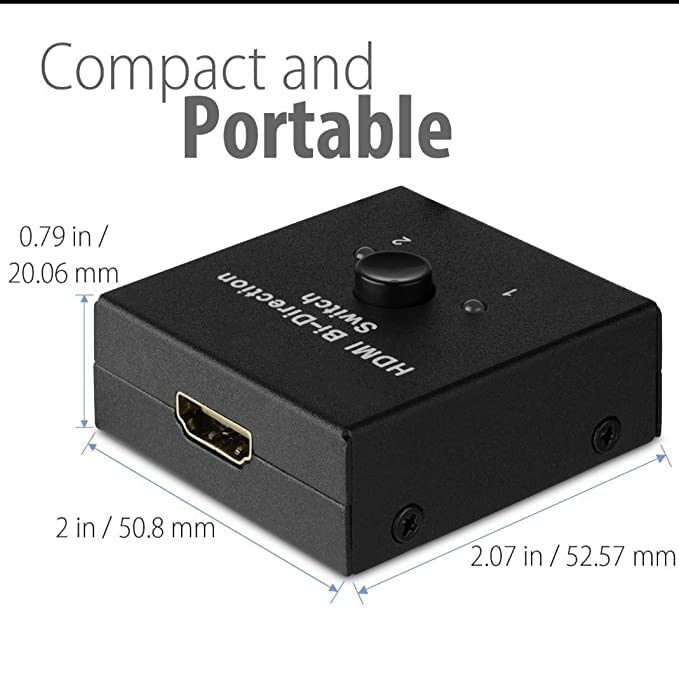 محول HDMI من سكال بي - 2 منفذ ثنائي الاتجاه بزر يدوي 2 في 1 مخرج أو مقسم 1 في 2 يدعم دقة 1080p 2K 4K FHD - مفتاح HDMI (أسود)