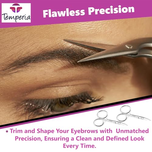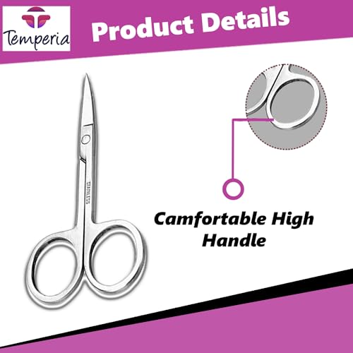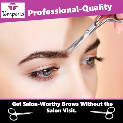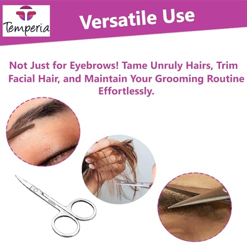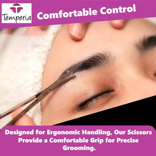 تيمبيريا مقص للحواجب والشارب وشعر الانف وتشذيب اللحية للرجال والنساء | مقص صغير للحلاقة والعناية | تصميم منحني امن ومعدن ممتاز لا يصدأ | 1 مقص حواجب