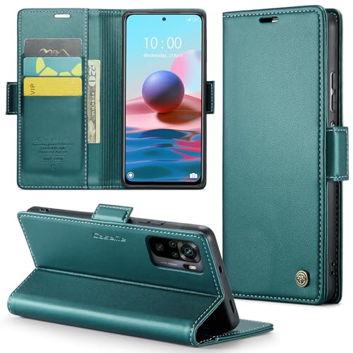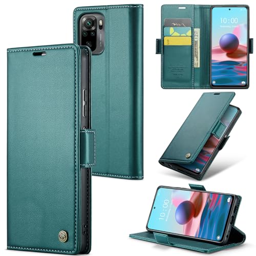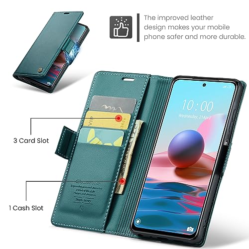 جراب موبايل قابل للطي من الجلد الصناعي الفاخر من انبلاك 023 بفتحة للبطاقات متوافق مع ريدمي نوت 10 4G / نوت 10s (اخضر)