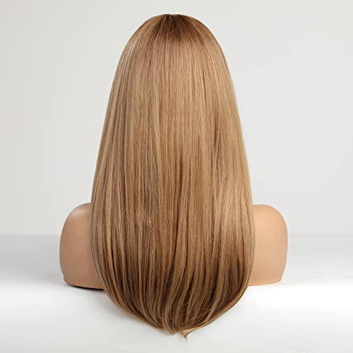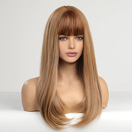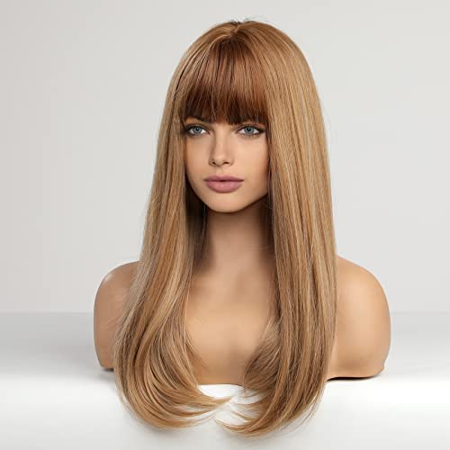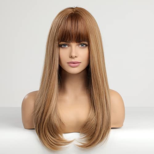 باروكة شعر صناعي طويل مع غرة انيقة للنساء ذوات البشرة البيضاء من هيركيوب - لون اشقر