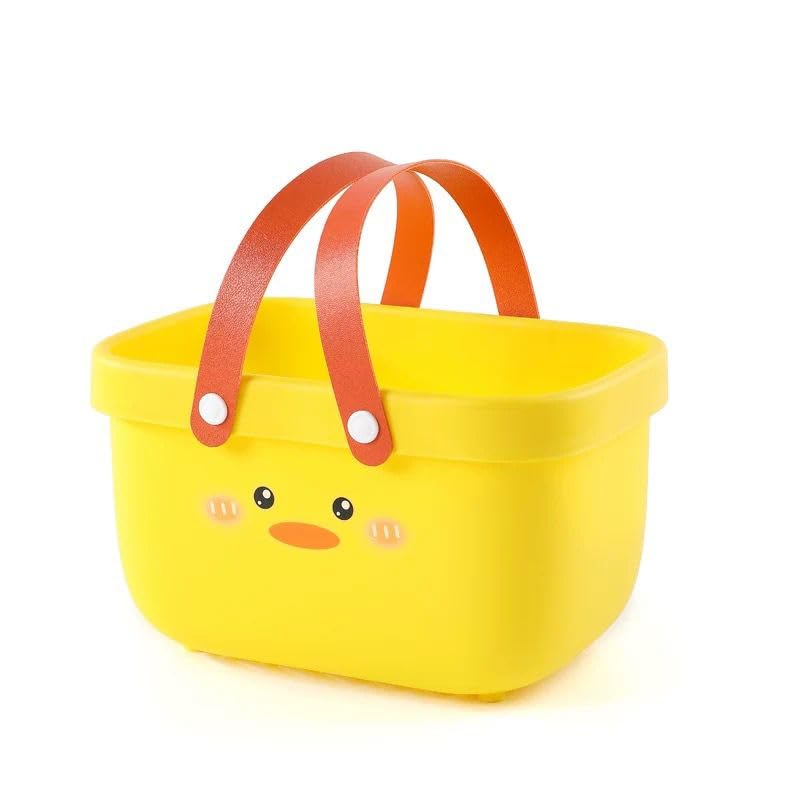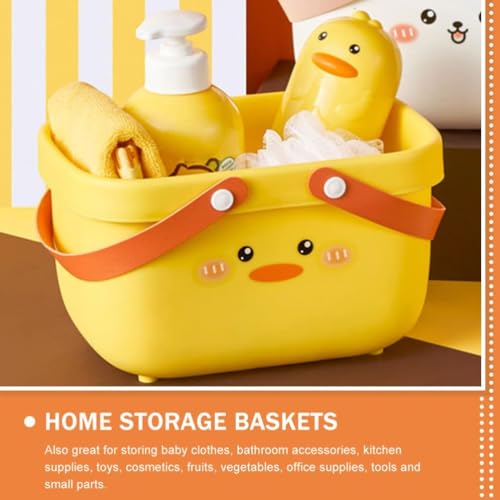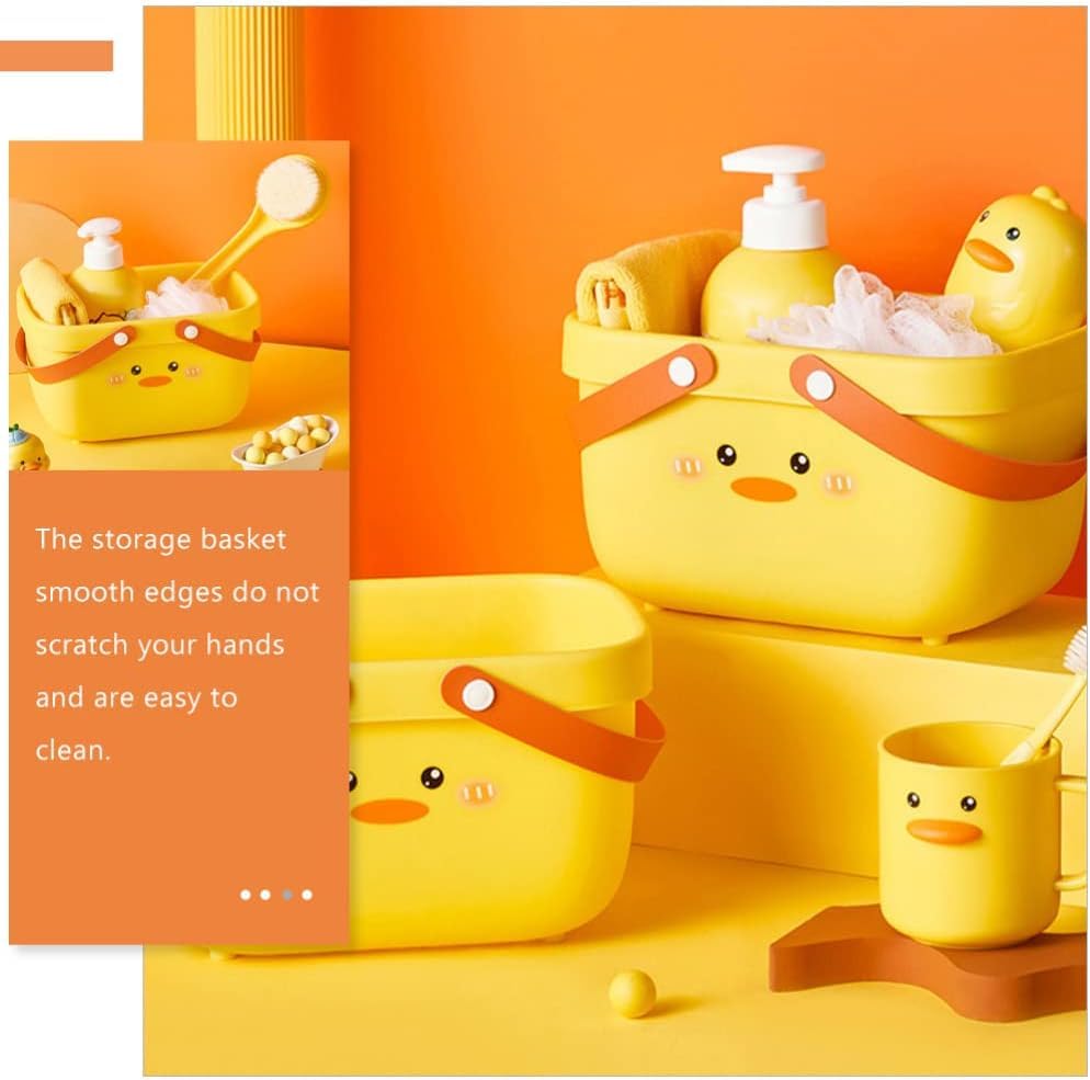 سلة تخزين حمام بتصميم بطة – باللون الأصفر، مقاس 25 × 25 × 10 سم، تتحمل حتى 2 كجم، سلة قائمة بذاتها مزودة بمقابض