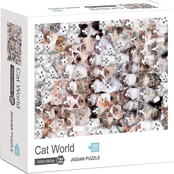- بازل التحدي: يتميز هذا البازل المكون من 1000 قطعة بتصميم خيالي لقطط لطيفة في أوضاع مختلفة، ليُكوّن مشهدًا رائعًا لعالم القطط.