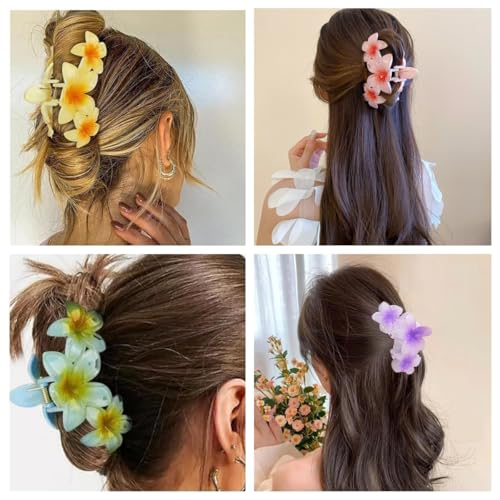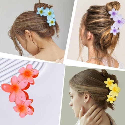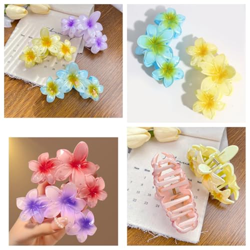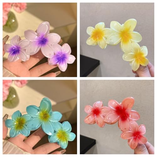 مشابك شعر على شكل زهور، عبوة من 4 مشابك شعر على شكل زهور الشاطئ، مشابك شعر بلاستيكية على شكل زهور، مشابك شعر للنساء والفتيات، اكسسوارات تصفيف الشعر