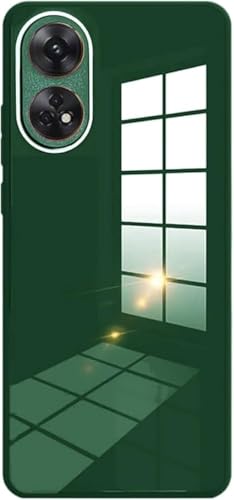 جراب خلفي مقاوم للخدش من الزجاج المقوى لموبايل اوبو A18 الموعز غطاء حماية السيليكون والبولي يوريثين الحراري بحواف ممتصة للصدمات اخضر داكن