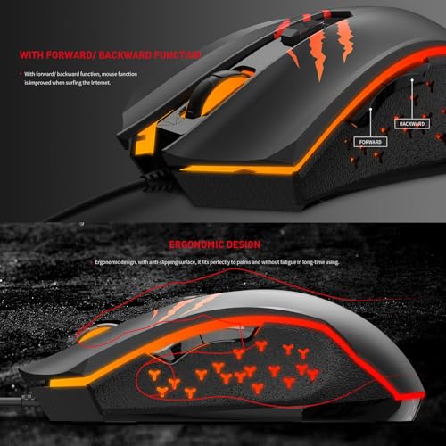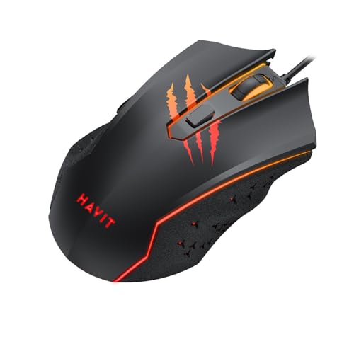 ماوس الالعاب جيم نوت MS1027 من هافيت؛ USB، باضاءة ليد - 6 ازرار، 2400 نقطة في البوصة- 2725605868814