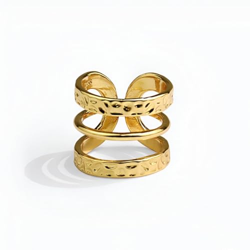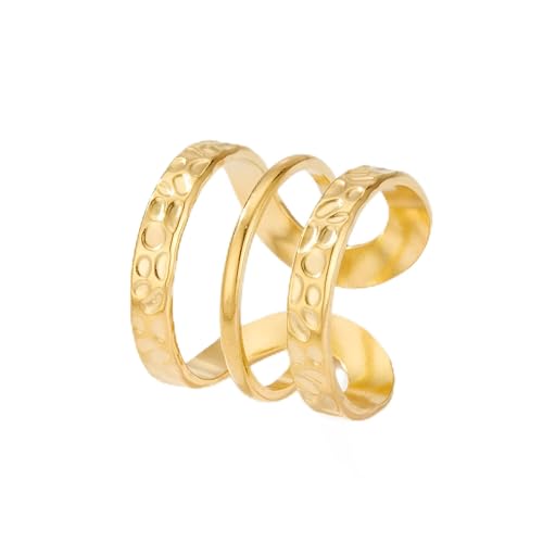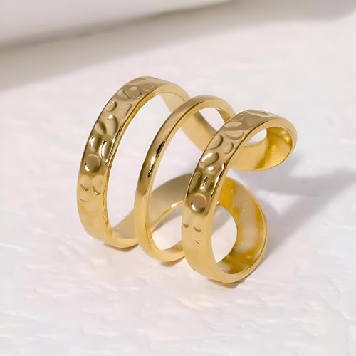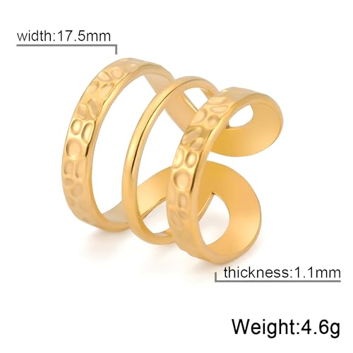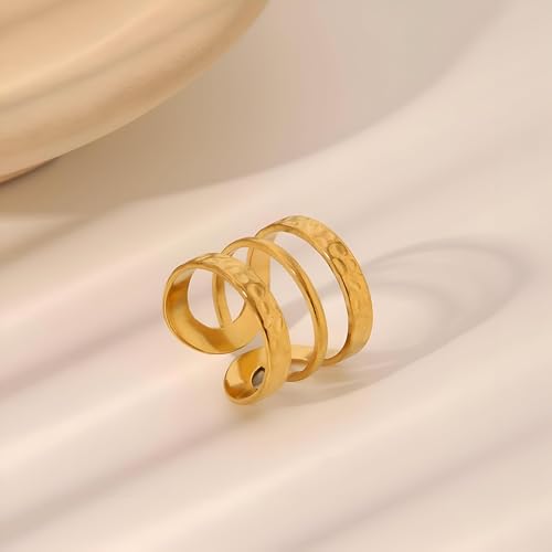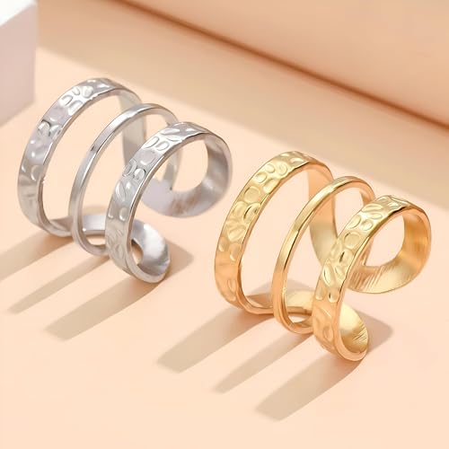 خاتم مجوهرات - فريد من نوعه من الستانلس ستيل المقاوم للصدأ، خاتم قابل للتعديل، يتضمن تصميم مفتوح مكدس للنساء، بخلاف المجوهرات الأنيقة لمحبي الموضة