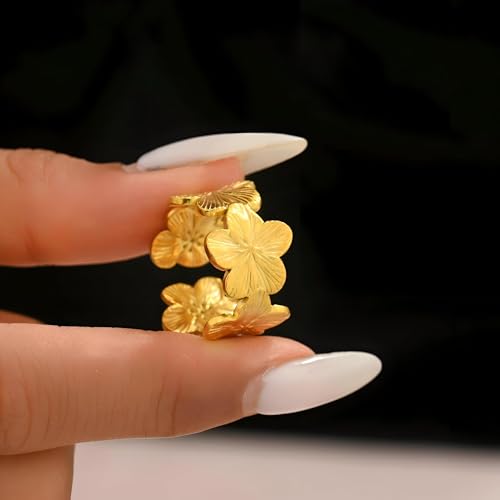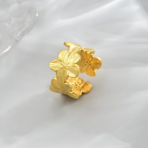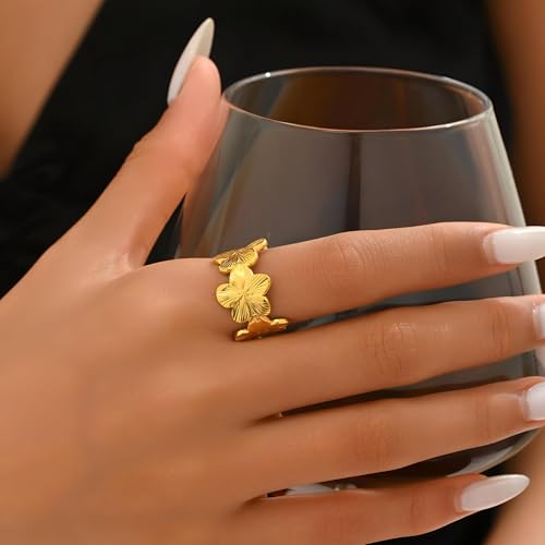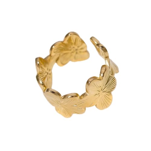 خاتم - خاتم جميل قابل للتعديل من الستانلس ستيل من الذهب المقاوم للذهب، تصميم مفتوح عصري للنساء، مجوهرات قابلة للتكديس وغير قابلة للتكديس لجميع المناسبات