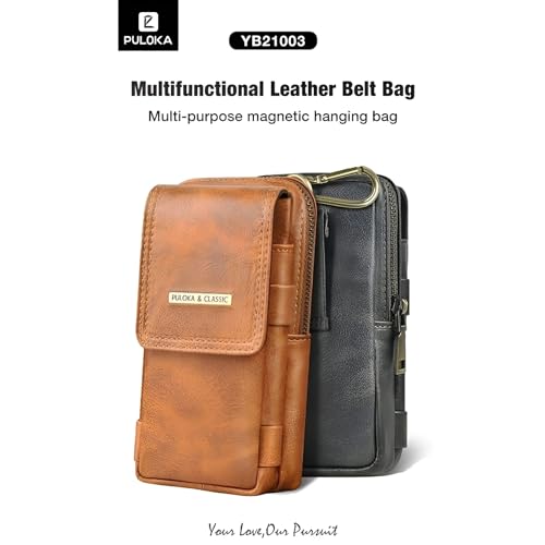 شنطة خصر متعددة الاستخدامات للموبايل من الجلد مع مشبك حزام وإغلاق مغناطيسي آمن وتوفر حماية قصوى من نكست ستور، لون بني