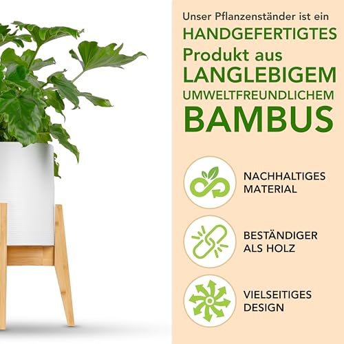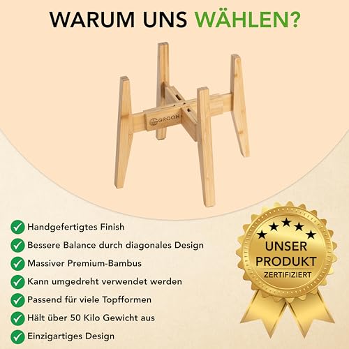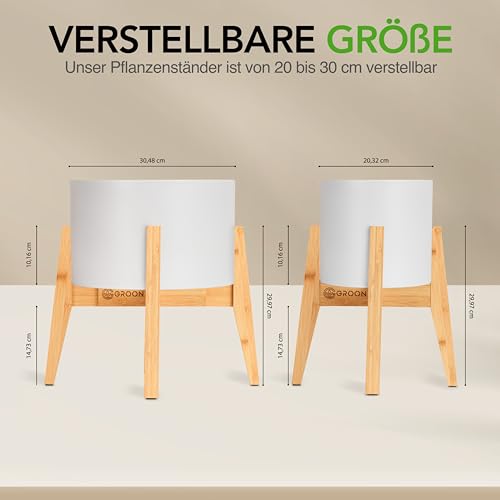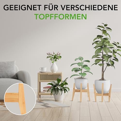حامل نباتات من خشب من الخيزران قابل للتعديل يناسب أوعية النباتات بحجم 20-30 سم بتصميم أنيق مناسب للاستخدام في الأماكن الداخلية والخارجية، لون بني فاتح، بدون الأصيص والنبات