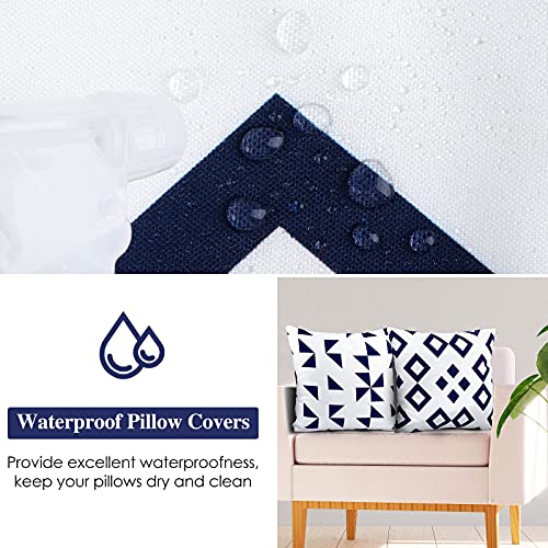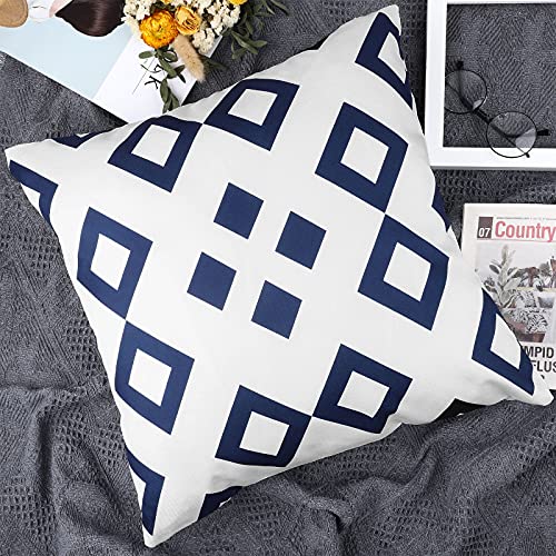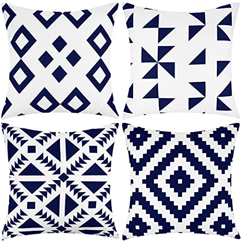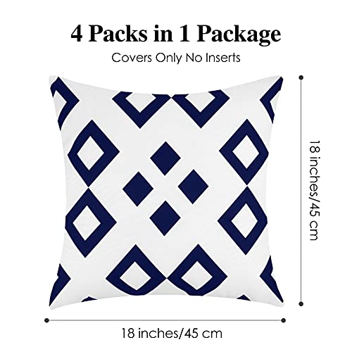 أغطية وسائد من ANECO مقاومة للماء مكونة من 4 قطع أغطية وسائد هندسية وأغطية وسائد مربعة للحدائق الخارجية للديكور الداخلي والخارجي ، 18 بوصة - 18 بوصة ، أزرق داكن