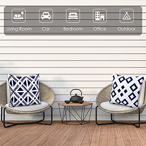 - محتويات العبوة: سوف تحصل على 4 قطع من أغطية الوسائد المقاومة للماء بأنماط هندسية، 1 لكل نمط، وكلها باللون الكحلي؛ الكمية كافية والأنماط فريدة من نوعها، وبالتالي تلبي احتياجاتك اليومية في الديكور الداخلي والخارجي