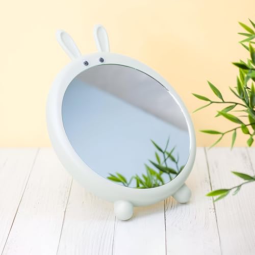 مرآة على شكل ارنب - تصميم مصغر فريد لطاولات التزيين، مثالية للحفاظ على أساسيات طفلك منظمة مع مجموعة من الألوان.