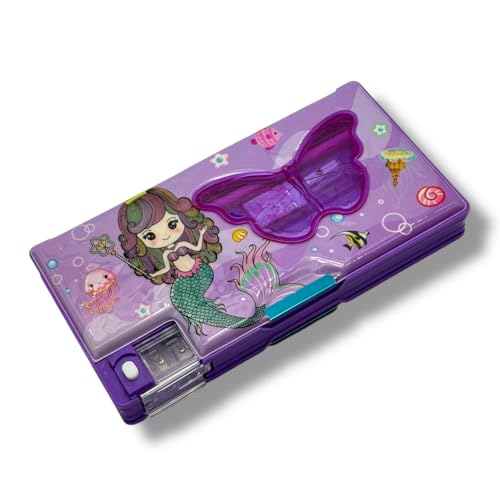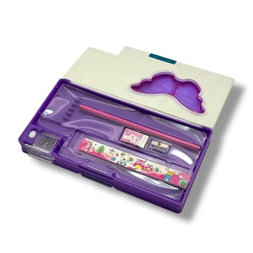 مقلمة مدرسية للأطفال من كيوشوب – تصميمات كرتونية رائعة – تحتوي على أدوات مدرسية: مسطرة، قلم، ممحاة، مبراة عدد 2 – مقلمة هدايا مميزة للبنات والأولاد للمدرسة أو الاستخدام اليومي (Purple)