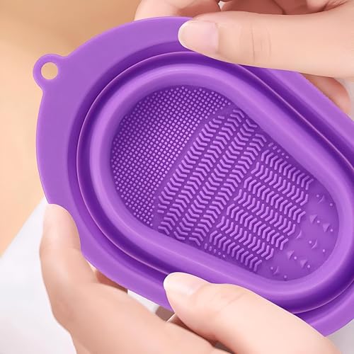 وسادة تنظيف - من السيليكون بتصميم ناعم ومتين لتنظيف فرش المكياج دون مجهود، وحاوية صغيرة قابلة للطي، مثالية للسفر ومتوفرة بألوان متعددة