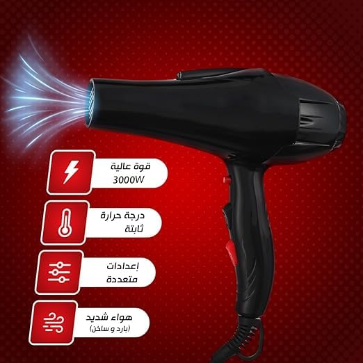 - محرك قوي 3000W: احصلي على نتائج تجفيف سريعة وفعالة بفضل المحرك عالي الأداء بقدرة 3000W، مما يوفر تدفق هواء فائق للحصول على نتائج سريعة.