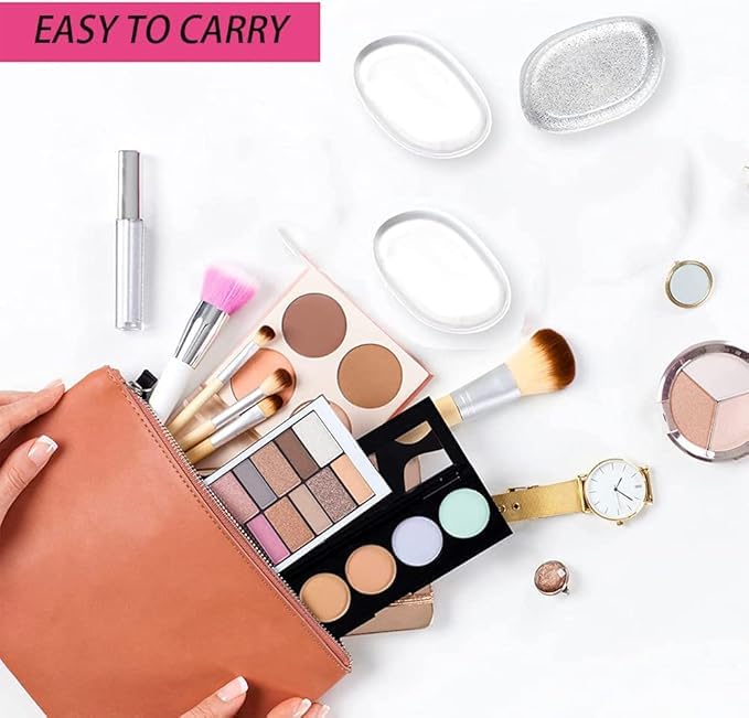 إسفنجة مكياج من السيليكون من قطعتين - أداة توزيع المستحضرات على الوجه شفافة قطعة مزج المكياج لكريم الأساس السائل وكريم سي سي والكونسيلر والبرايمر وكريم بي بي