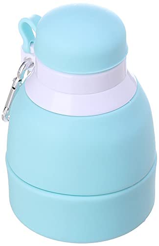 زجاجة مياه سيليكون وبلاستيك قابلة للطي مع ميدالية ستانلس ستيل - تركواز وابيض