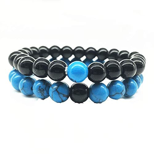 سوار للازواج من للبالغين الجنسين احجار العقيق الازرق والفيروزي والاسود غير اللامع ww2716, متعددة,