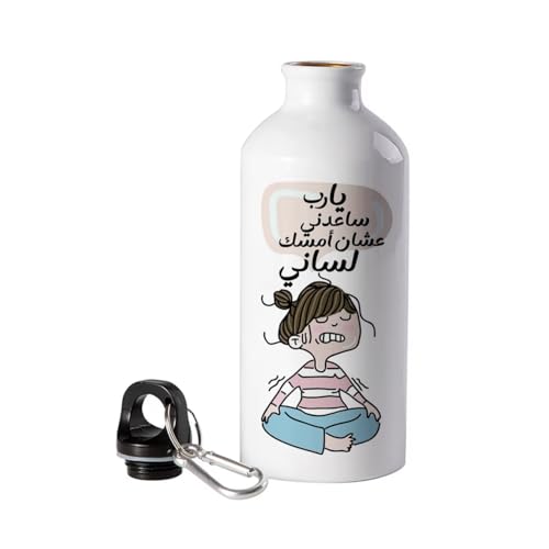 زجاجة مياه رياضية من الألومنيوم، طباعة على جانب واحد بتصميم هزلي، ساعدني امسك لساني، مه قابلية تخصيص الطباعة، 500 ملليلتر