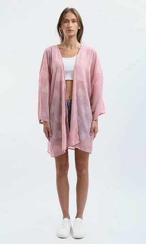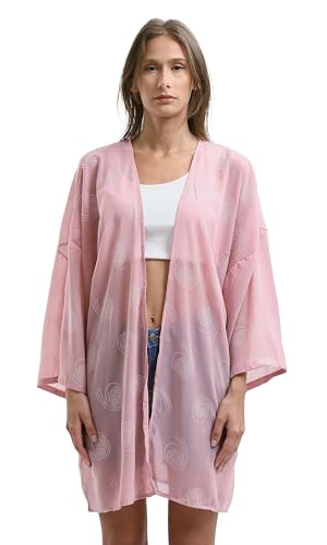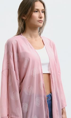 سويتر كيمونو صيفي سهل الارتداء منقوش بلون فوشيا وأصفر للنساء من ريفين