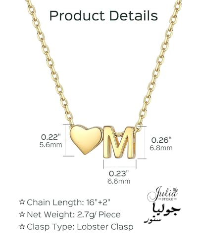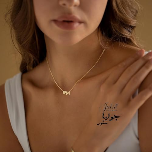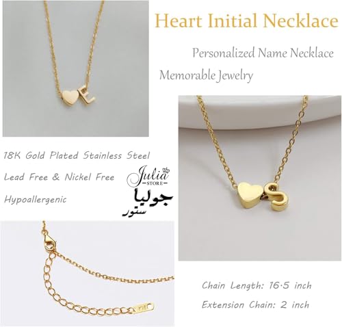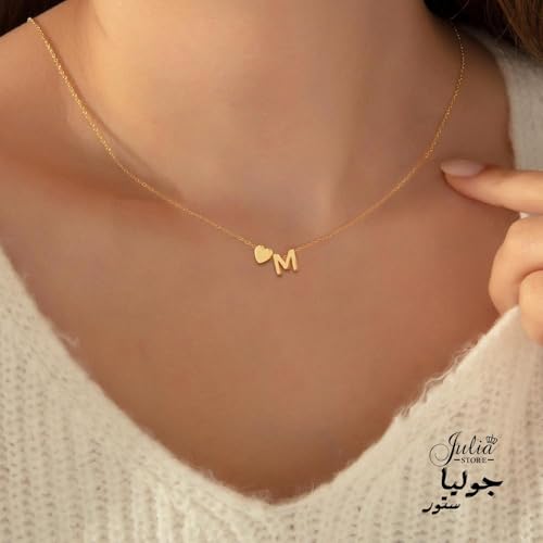 سلسلة أنيقة بدلاية على شكل قلب بحروف صغيرة مناسبة كهدية للبنات المراهقات للنساء مطلية بالذهب عيار 18 قيراط على شكل قلب من جوليا ستور
