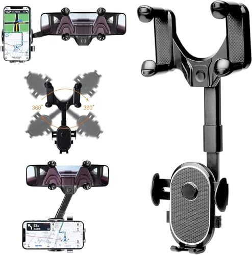 حامل للهاتف للسيارة ، قابل للدوران بزاوية 360 درجة وقابل للسحب، حامل هاتف للرؤية الخلفية للسيارات بتصميم قابل للتعديل بدون استخدام اليدين مناسب للهواتف الذكية (كود:6400) - من كابر تريد