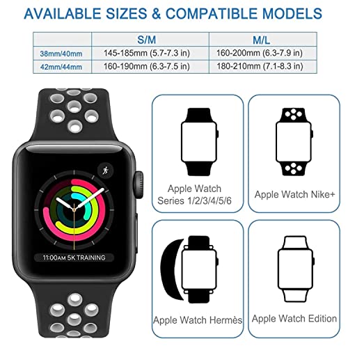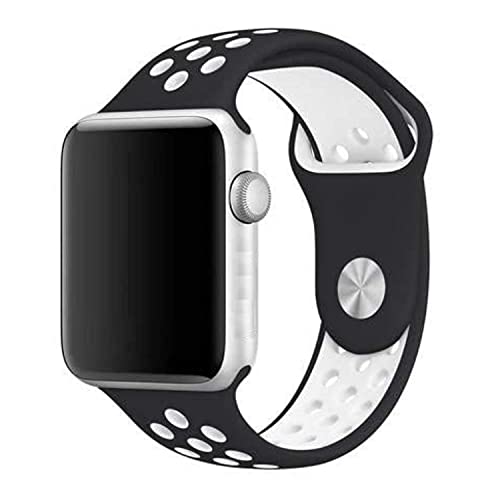 سوار معصم رياضي من السيليكون الناعم متوافق مع ساعة ابل اي ووتش مقاس 42 ملم و44 و45 تيشونتو اسود وابيض للبالغين الجنسين