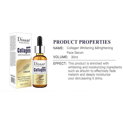 سيروم تبييض الوجه بالكولاجين النقي المضاد للتجاعيد وعلامات تقدم السن لترطيب البشرة الحساسة والنمش وتجديد من ديسار بيوتي، عبوة 30 ملليلتر، للجنسين،