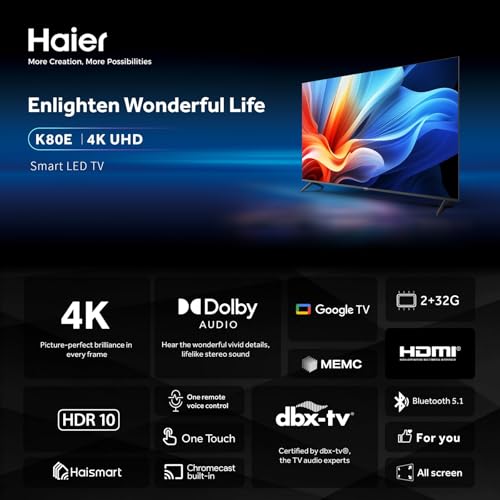 - قم بتحميل تطبيقاتك المفضلة من متجر جوجل بلاي واحصل على توصيات مخصصة عبر جميع منصاتك/ تحكم صوتي عن بعد/ سهولة توصيل الموبايلات باستخدام كروم كاست/ استخدم تطبيق Haismart لتوصيل الأجهزة الذكية بالتلفزيون والتحكم فيها باستخدام جهاز تحكم صوتي واحد/ تقنية المدى الديناميكي العالي HDR10 بجودة 4K/ ذاكرة رام 2 جيجابايت + ذاكرة روم 32 جيجابايت لسهولة الاستخدام المريح